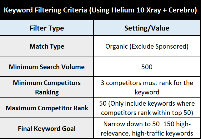 This process helps you eliminate noise from your keyword list and ensures you’re left with a refined, actionable set of keywords that align with your product and PPC goals.