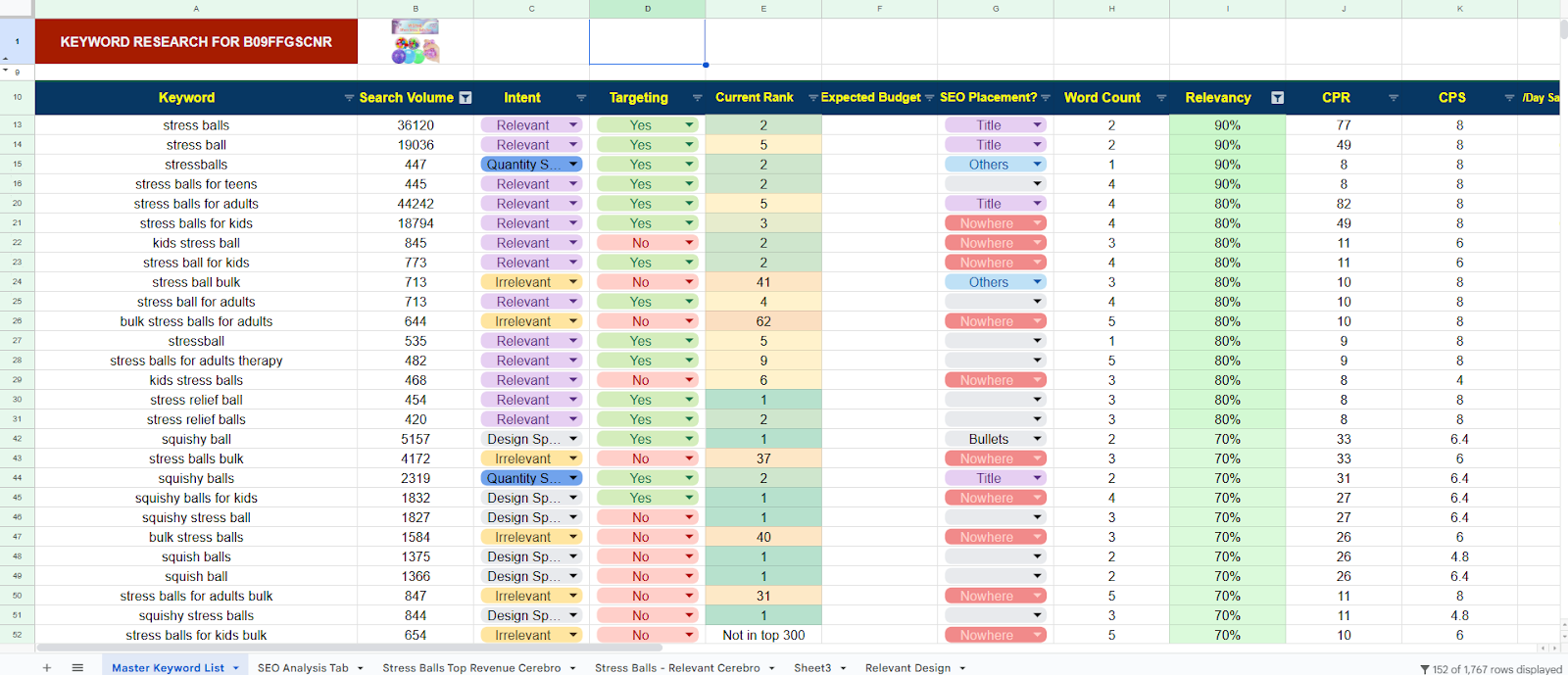 The final look of your master keyword list should be organized and easy to read, containing all the key metrics mentioned above.